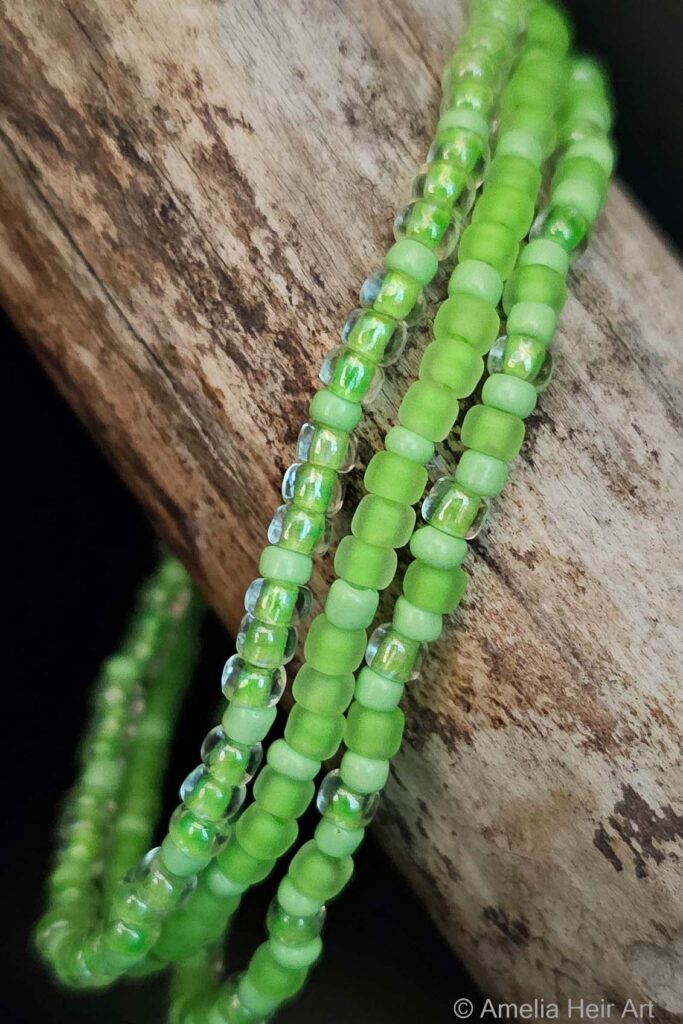 Use a measuring tape, preferably a soft flexible one often used in clothing measurements. Wrap the measuring tape around your wrist and find the length that is most comfortable for you. Keep in mind that the bracelets are sized in ½ inch increments and are on a stretchy cord. If you find that your comfort level is in between ½ inch sizes, move the measuring tape on your wrist to the ½ inch just smaller and the ½ inch just larger, and choose the size level that feels best for you, one with a little more give or one that is a little snug.