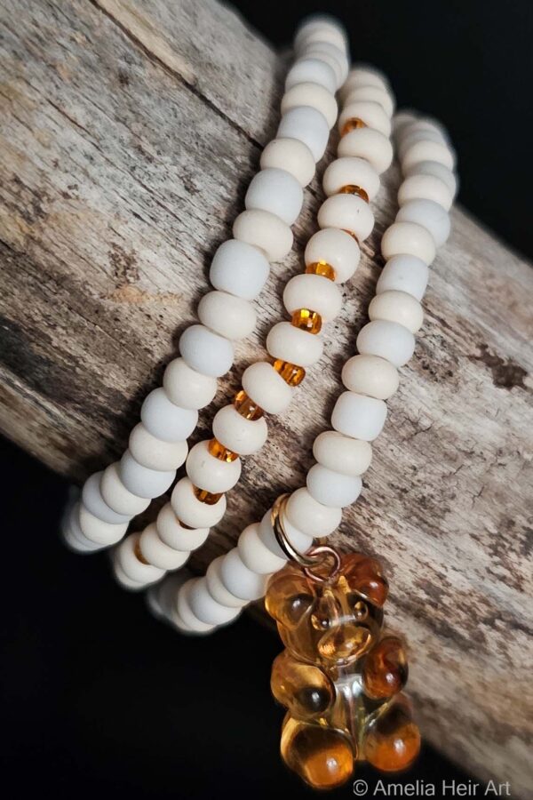 Use a measuring tape, preferably a soft flexible one often used in clothing measurements.  Wrap the measuring tape around your wrist and find the length that is most comfortable for you. Keep in mind that the bracelets are sized in ½ inch increments and are on a stretchy cord.  If you find that your comfort level is in between ½ inch sizes, move the measuring tape on your wrist to the ½ inch just smaller and the ½ inch just larger, and choose the size level that feels best for you, one with a little more give or one that is a little snug.
