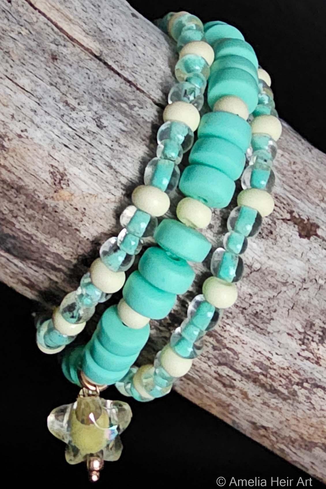 Use a measuring tape, preferably a soft flexible one often used in clothing measurements.  Wrap the measuring tape around your wrist and find the length that is most comfortable for you. Keep in mind that the bracelets are sized in ½ inch increments and are on a stretchy cord.  If you find that your comfort level is in between ½ inch sizes, move the measuring tape on your wrist to the ½ inch just smaller and the ½ inch just larger, and choose the size level that feels best for you, one with a little more give or one that is a little snug.