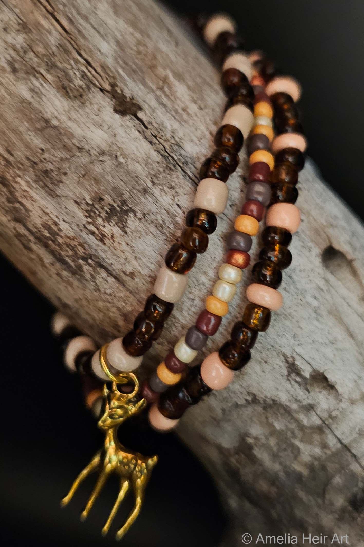 Use a measuring tape, preferably a soft flexible one often used in clothing measurements.  Wrap the measuring tape around your wrist and find the length that is most comfortable for you. Keep in mind that the bracelets are sized in ½ inch increments and are on a stretchy cord.  If you find that your comfort level is in between ½ inch sizes, move the measuring tape on your wrist to the ½ inch just smaller and the ½ inch just larger, and choose the size level that feels best for you, one with a little more give or one that is a little snug.