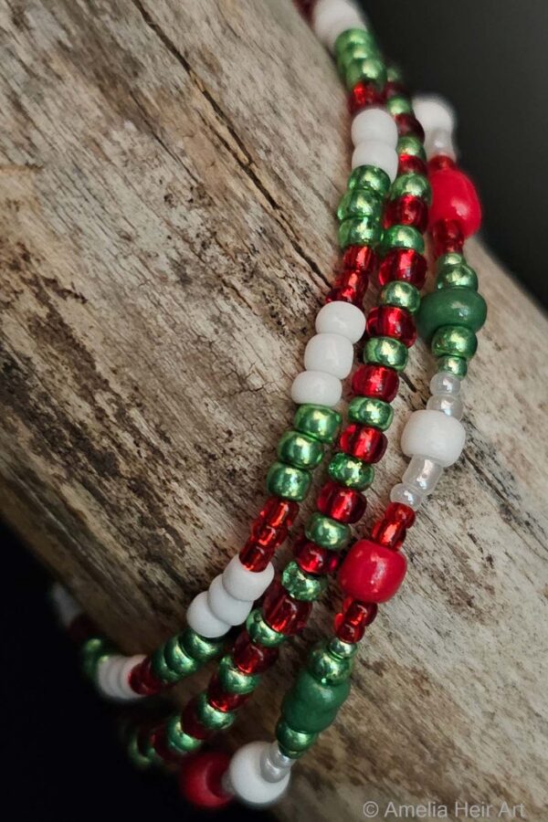 Use a measuring tape, preferably a soft flexible one often used in clothing measurements.  Wrap the measuring tape around your wrist and find the length that is most comfortable for you. Keep in mind that the bracelets are sized in ½ inch increments and are on a stretchy cord.  If you find that your comfort level is in between ½ inch sizes, move the measuring tape on your wrist to the ½ inch just smaller and the ½ inch just larger, and choose the size level that feels best for you, one with a little more give or one that is a little snug.