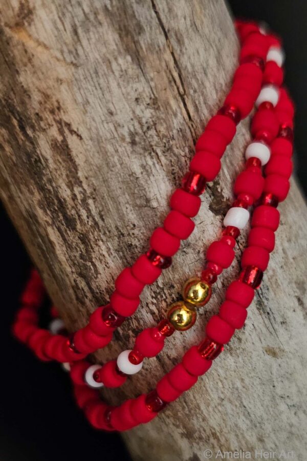 Use a measuring tape, preferably a soft flexible one often used in clothing measurements.  Wrap the measuring tape around your wrist and find the length that is most comfortable for you. Keep in mind that the bracelets are sized in ½ inch increments and are on a stretchy cord.  If you find that your comfort level is in between ½ inch sizes, move the measuring tape on your wrist to the ½ inch just smaller and the ½ inch just larger, and choose the size level that feels best for you, one with a little more give or one that is a little snug.