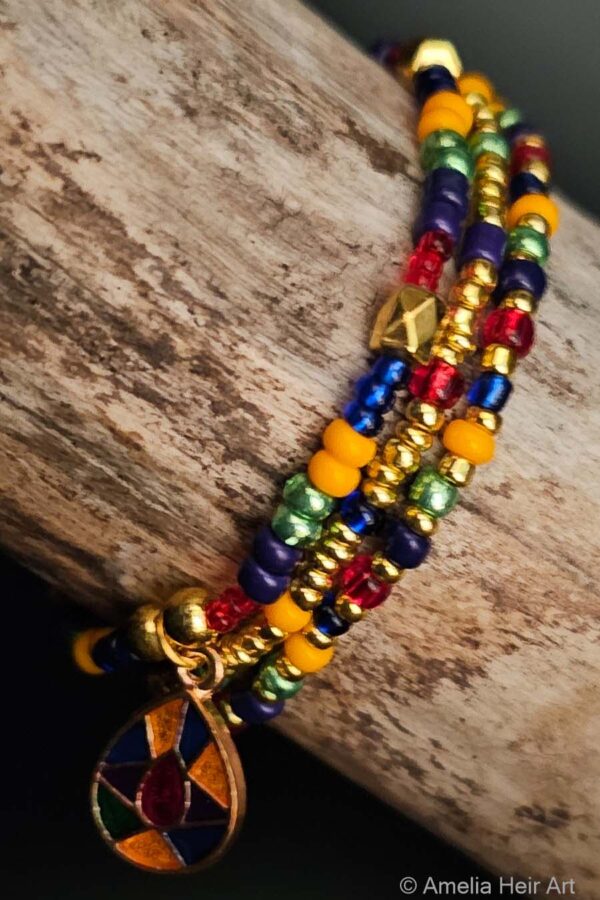 Use a measuring tape, preferably a soft flexible one often used in clothing measurements.  Wrap the measuring tape around your wrist and find the length that is most comfortable for you. Keep in mind that the bracelets are sized in ½ inch increments and are on a stretchy cord.  If you find that your comfort level is in between ½ inch sizes, move the measuring tape on your wrist to the ½ inch just smaller and the ½ inch just larger, and choose the size level that feels best for you, one with a little more give or one that is a little snug.