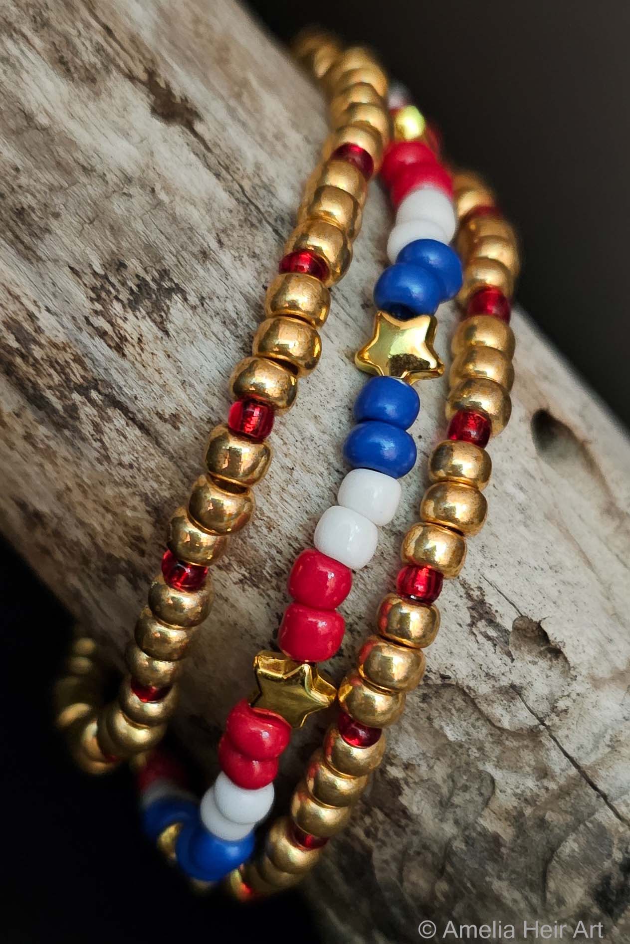 Use a measuring tape, preferably a soft flexible one often used in clothing measurements.  Wrap the measuring tape around your wrist and find the length that is most comfortable for you. Keep in mind that the bracelets are sized in ½ inch increments and are on a stretchy cord.  If you find that your comfort level is in between ½ inch sizes, move the measuring tape on your wrist to the ½ inch just smaller and the ½ inch just larger, and choose the size level that feels best for you, one with a little more give or one that is a little snug.