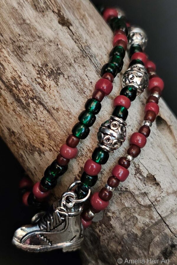 Use a measuring tape, preferably a soft flexible one often used in clothing measurements.  Wrap the measuring tape around your wrist and find the length that is most comfortable for you. Keep in mind that the bracelets are sized in ½ inch increments and are on a stretchy cord.  If you find that your comfort level is in between ½ inch sizes, move the measuring tape on your wrist to the ½ inch just smaller and the ½ inch just larger, and choose the size level that feels best for you, one with a little more give or one that is a little snug.