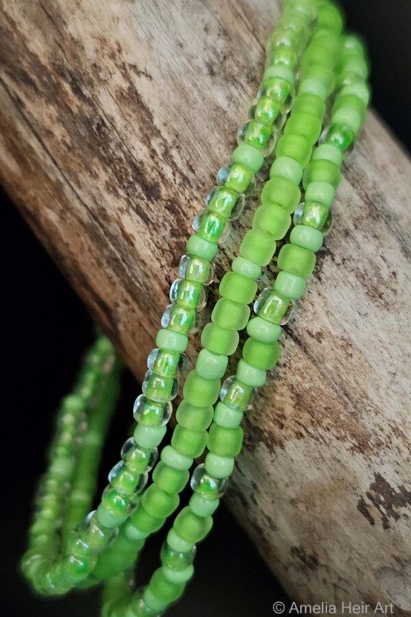 Use a measuring tape, preferably a soft flexible one often used in clothing measurements.  Wrap the measuring tape around your wrist and find the length that is most comfortable for you. Keep in mind that the bracelets are sized in ½ inch increments and are on a stretchy cord.  If you find that your comfort level is in between ½ inch sizes, move the measuring tape on your wrist to the ½ inch just smaller and the ½ inch just larger, and choose the size level that feels best for you, one with a little more give or one that is a little snug.