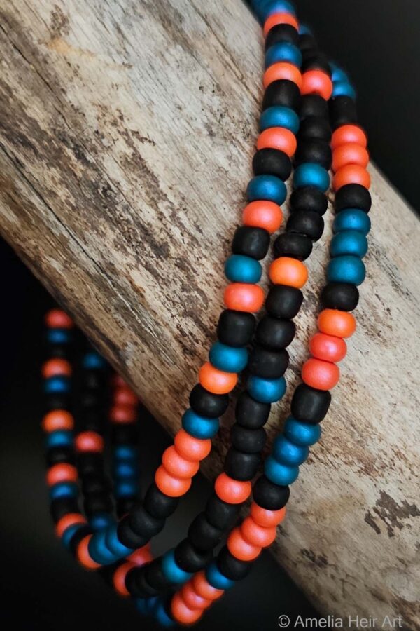 Use a measuring tape, preferably a soft flexible one often used in clothing measurements.  Wrap the measuring tape around your wrist and find the length that is most comfortable for you. Keep in mind that the bracelets are sized in ½ inch increments and are on a stretchy cord.  If you find that your comfort level is in between ½ inch sizes, move the measuring tape on your wrist to the ½ inch just smaller and the ½ inch just larger, and choose the size level that feels best for you, one with a little more give or one that is a little snug.